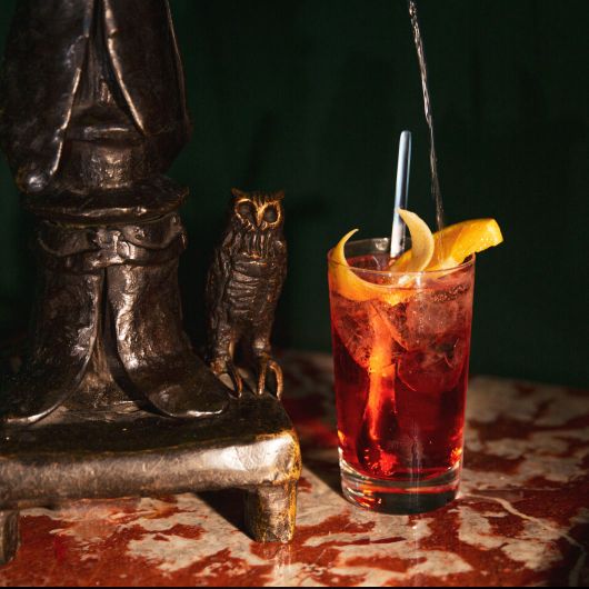 Diego Giacomettis fünfarmige Alabasterleuchten tauchen die Bar in Mondscheinlicht, und Werke von Joan Miró, Pablo Picasso oder Paul Klee beseelen den Raum. Kunst allüberall – traditionellerweise auch in den Cocktailgläsern.